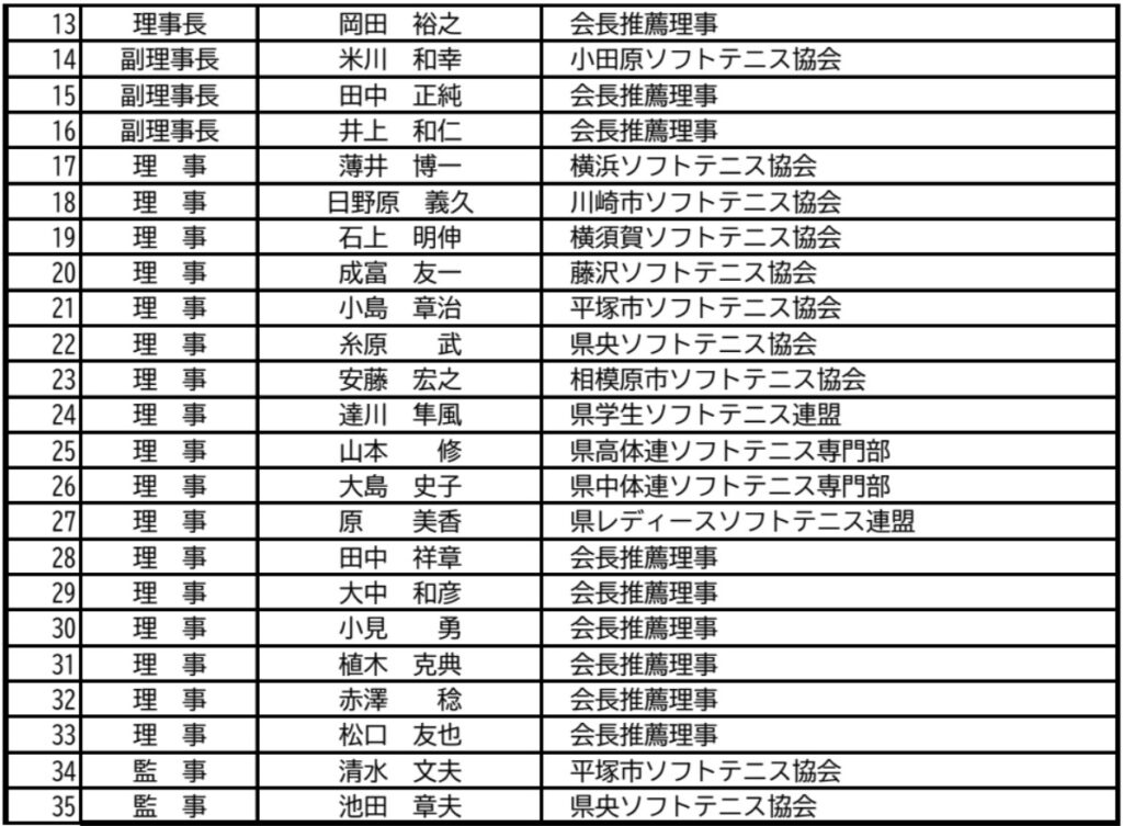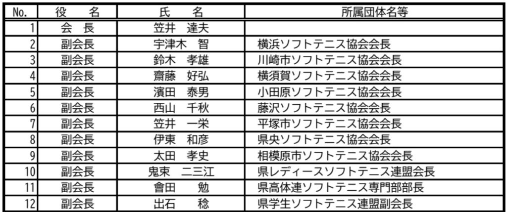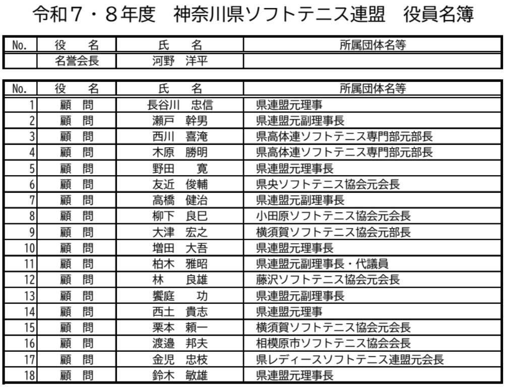 令和7・8年度 神奈川県ソフトテニス連盟 役員名簿