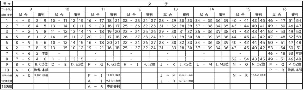 (各コートの第1試合は本部で指定します)