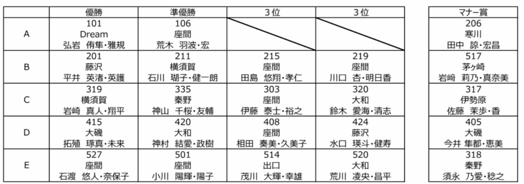 各ゾーンの上位入賞した親子ペアは、以下の通り。