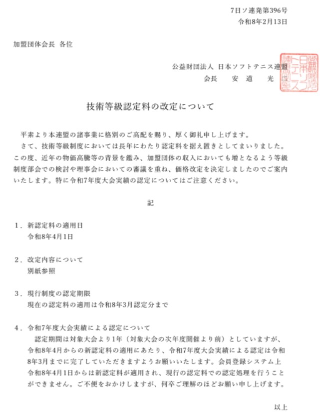 ※個人からの(公財)日本ソフトテニス連盟宛の直接のお申し込みは受け付けません。